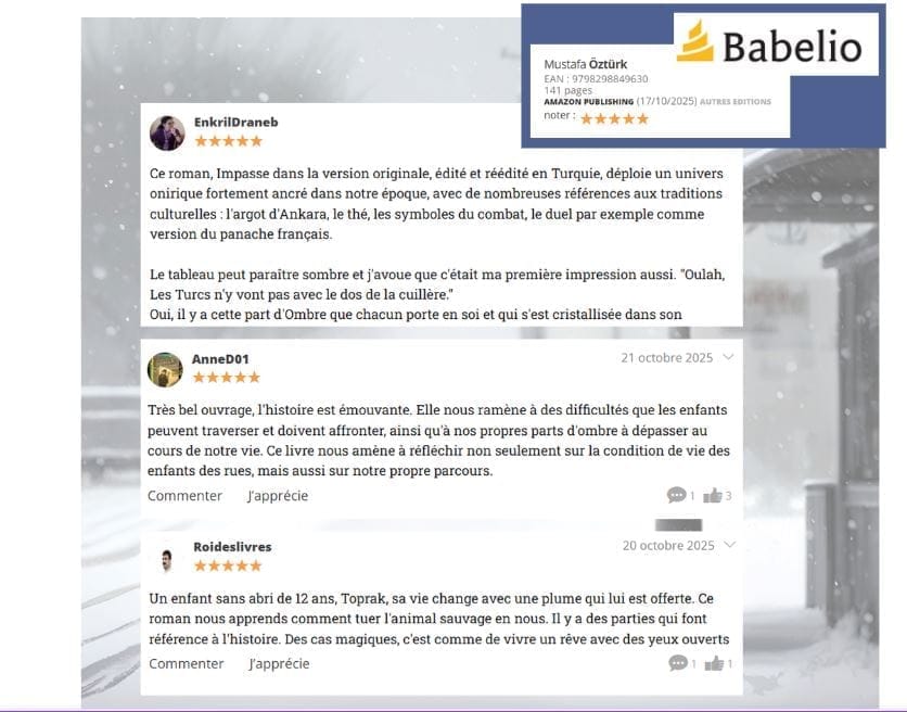 - Si le livre vous touche, même un mot en commentaire sur Amazon fera toute la différence.